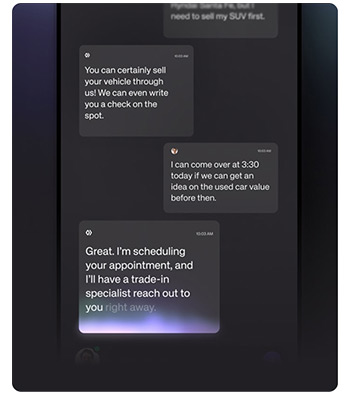- Seamless Integration - CRM, inventory feeds, service schedulers, OEM data, website platform—everything syncs so the AI always knows what’s in stock, what’s available, and who should respond.
